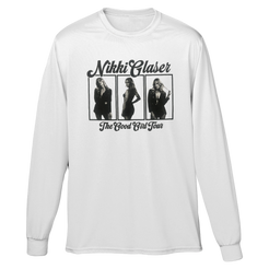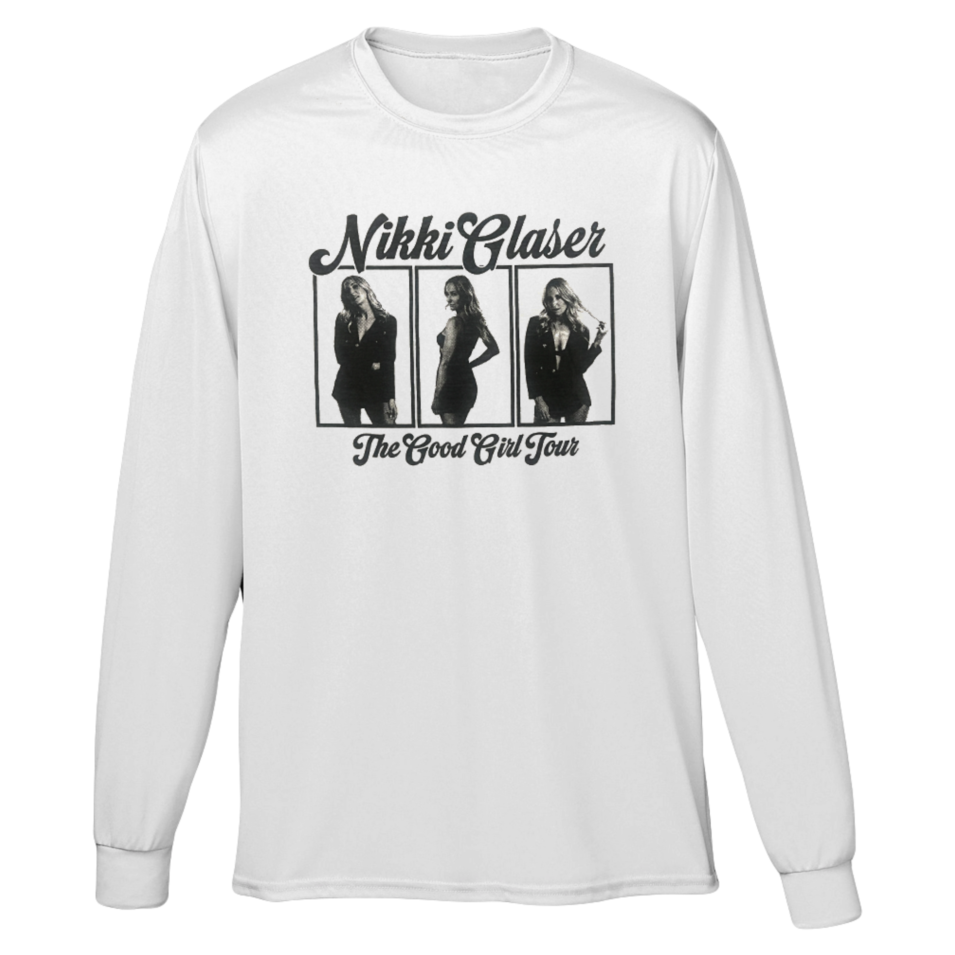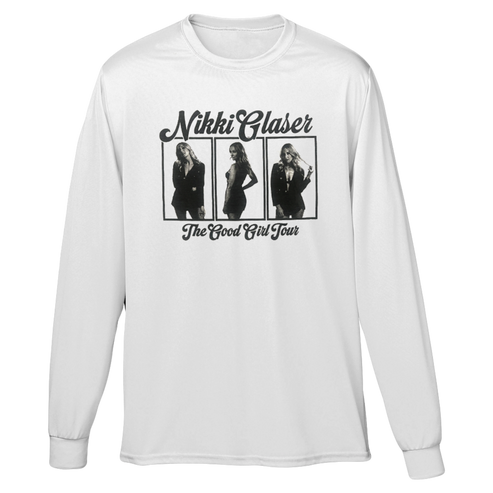 Good Girl Tour Portrait Long Sleeve in white with front print only.